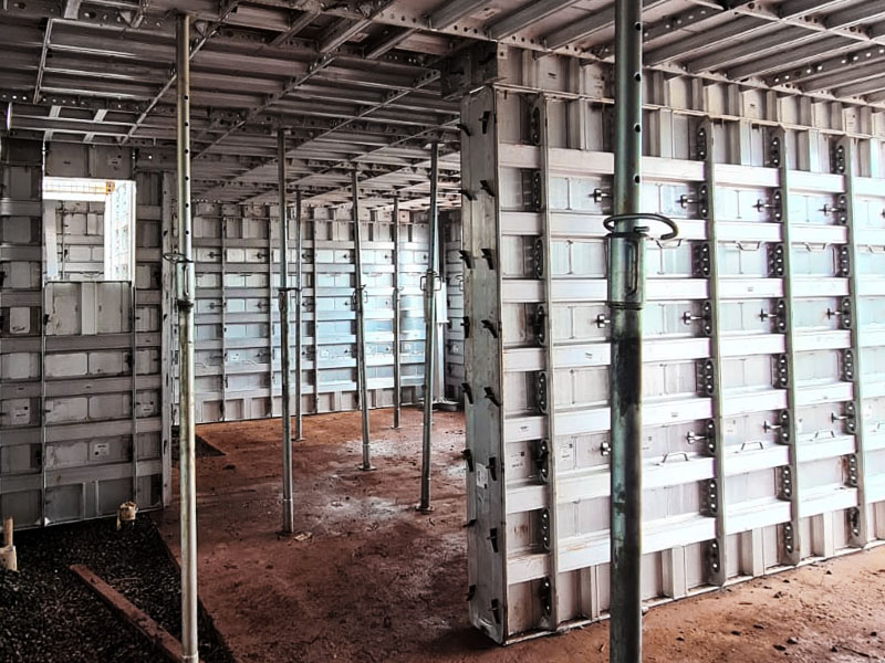 O uso de formas metálicas para concreto em alumínio garante leveza estrutural combinada com resistência mecânica e durabilidade.